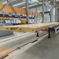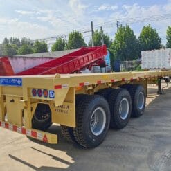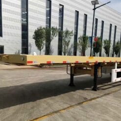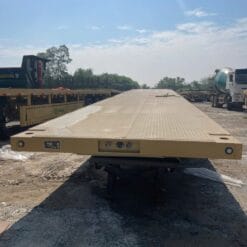 Sơ Mi Rơ Mooc Sàn Huanlu 40 Feet được thiết kế với dạng sàn phẳng, lý tưởng để vận chuyển hàng hóa có kích thước lớn, cồng kềnh hoặc có hình dạng không đồng đều. Cấu trúc sàn phẳng giúp việc chất và dỡ hàng trở nên dễ dàng hơn, mang lại sự linh hoạt cho các công ty logistics trong việc xử lý nhiều loại hàng hóa khác nhau. Mẫu mooc mang mã LYT9400P – 40ft, có kích thước 12.400 mm x 2.500 mm x 1.560 mm (Dài x Rộng x Cao), cung cấp không gian rộng rãi cho nhiều loại hàng hóa.