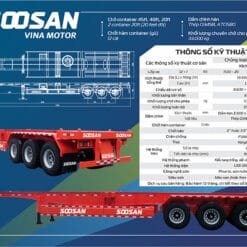 Với các thông số kỹ thuật và thiết kế tối ưu, rơ mooc xương 45 feet 3 trục này là sự lựa chọn hoàn hảo cho các nhu cầu vận tải hạng nặng, đảm bảo vận hành an toàn, bền bỉ và hiệu quả cao.